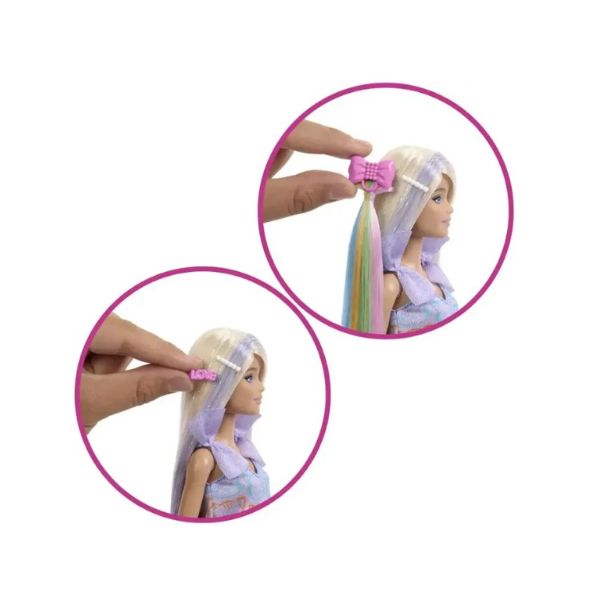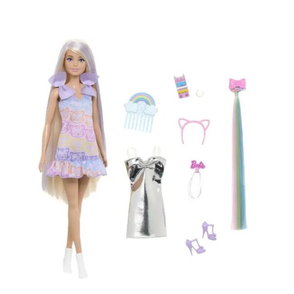 Barbie Fun & Fancy lutka sa ultra dugom kosom donosi beskrajne mogućnosti za frizure i modne transformacije. U kompletu se nalaze šnalice, gumice, češalj, rajf sa mačjim ušima i ekstenziju u duginim bojama. Deca mogu beskrajno da eksperimentišu sa frizurama i odevnim kombinacijama, razvijajući maštu i kreativnost. Namenjena je uzrastu 3+ godine. Upozorenje: sadrži sitne delove – nije za decu mlađu od 3 godine.
