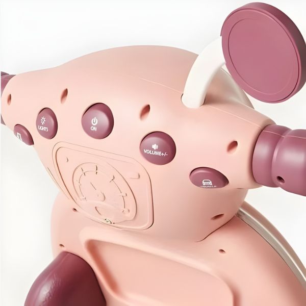 Guralica / hodalica za decu 12+ meseci. Stabilna konstrukcija sa ručkama za držanje pomaže mališanima pri učenju hodanja i razvoju ravnoteže. Interaktivni panel sa svetlom, muzikom i igračkama podstiče koordinaciju i zabavu tokom igre. Izrađena od kvalitetne plastike sa zaobljenim ivicama za bezbednu upotrebu.