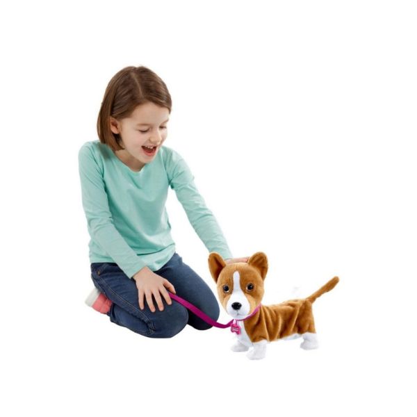 Ovaj mali korgi hoda, laje i veselo maše repom dok ga vodiš na njegovom ružičastom povodcu. Lagana konstrukcija i mekano krzno čine ga prijatnim za igru i maženje. Deca ga lako vode, a njegov rep i zvukovi dodaju još više zanimljivih trenutaka tokom šetnje. Praktičan je za svakodnevnu igru i brzo postaje omiljeni drugar. Uzrast: 3+