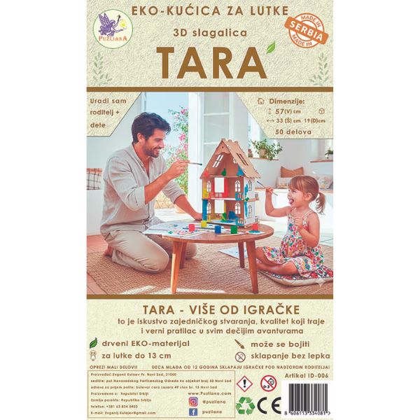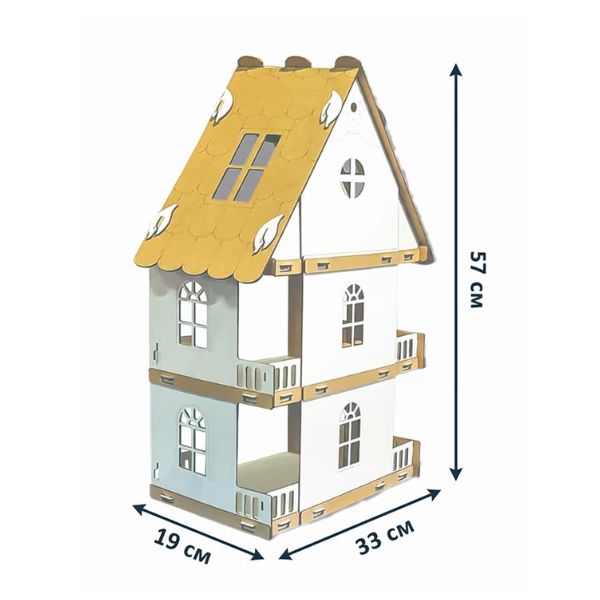 Impresivna veličina: Visina 57 cm, širina 32 cm, dubina 19 cm. Dominira u sobi, a ne zauzima previše prostora. Težina 1.7 kg. Kućica je vaše platno! Možete je bojiti temperama, flomasterima ili ukrašavati dekupaž tehnikom. Svaka je unikatan rad vašeg deteta! Laka montaža (20 min): Bez alata i bez lepljenja! “Puzliana” sistem omogućava da se 50 delova savršeno uklopi. Razvija finu motoriku, logiku i strpljenje kod dece. Savršeno odgovara za L. O. L. , Enchantimals, Kinder figurice i sve lutke do 13 cm. Materijal: Čvrst, ekološki HDF (drveni materijal) 3mm – stabilno i dugotrajno. Broj delova: 50 elemenata. Lasersko sećenje. Proizvodnja: MADE IN SERBIA (Domaći porodični biznis). Sadržaj: Štampano uputstvo + delovi.