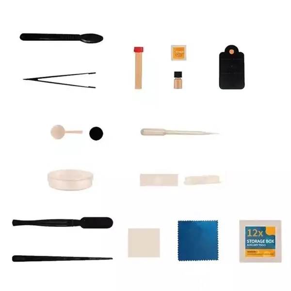 Osvetljenje: LED sa ugrađenim obojenim filterima. Materijal: Kvalitetna plastika. Napajanje: Na baterije. Preporučen uzrast: 6+ godina. Dimenzije mikroskopa: oko 14,5 x 9 x 24 cm. Dimenzije pakovanja: 29 x 42 x 9,6 cm.