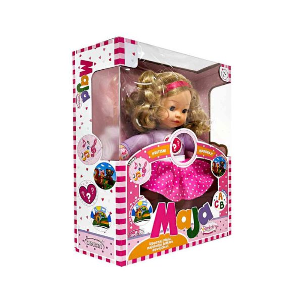 Upoznajte Maju – pričajuću lutku koja govori i peva na pritisak dugmeta. Namenjena je mlađoj deci i podstiče razvoj govora, igre uloga i maštovitosti. Maja ima meku kosu, haljinicu sa tufnicama i nežan glas koji je čini prijatnom za svakodnevnu igru. Deca je mogu nositi, maziti i slušati dok priča kratke rečenice ili peva pesmice.Uzrast: 2+Funkcije: govori i pevaDimenzije pakovanja: 33 × 20 × 40 cm