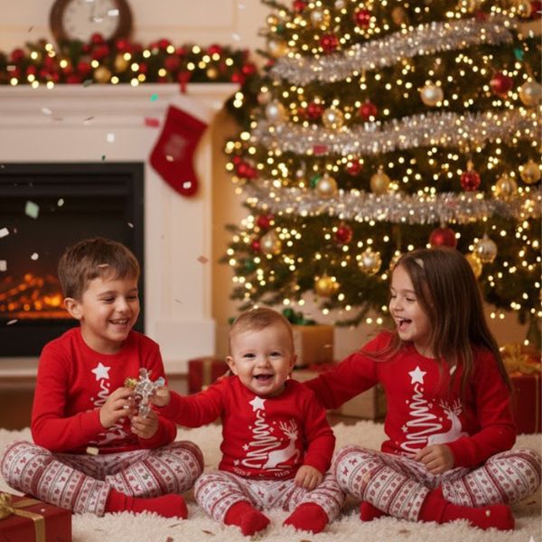 Dečija novogodišnja pidžama izrađena je od 100% pamuka i prijatna je za svakodnevno nošenje tokom zimskih večeri. Materijal je mekan, udoban i jednostavan za održavanje. Sakupljanje materijala je oko 2% po dužini i širini.