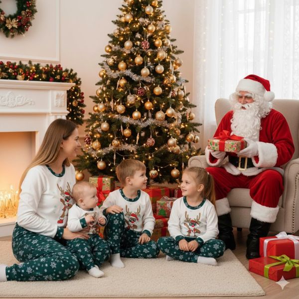 Dečija novogodišnja pidžama izrađena je od 100% pamuka i prijatna je za svakodnevno nošenje tokom zimskih večeri. Materijal je mekan, udoban i jednostavan za održavanje. Sakupljanje materijala je oko 2% po dužini i širini.