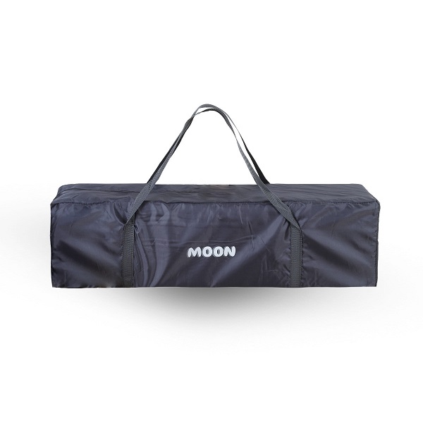 Moon krevetac ima mehanizam koji omogućava lako rasklapanje i sklapanje na male dimenzije tako da može stati u torbu koja se dobija uz njega i skladištiti ili poneti na kraća ili duža putovanja. Gornje ivice kreveca su obložene kako se dete ne bi povredilo, a bočne strane su mrežaste što, pored strujanja vazduha, roditeljima omogućava da svoje mališane uvek imaju na oku. Na dnu kreveca je zanimljiva aplikacija, koja će igru učiniti još zabavnijom i ceo ambijent učiniti još vedrijim i prijatnijim. Sa jedne strane kreveca se nalazi mrežasti otvor sa rajsferšlusom kako bi bebe kada počnu više da se kreću mogle da ga koriste za ulazak i izlazak. Dimenzije rasklopljenog kreveca: D 120 cm x Š 76 cm x V 68 cm. Dimenzije sklopljenog kreveca: Š 26 cm x V 77 cm.