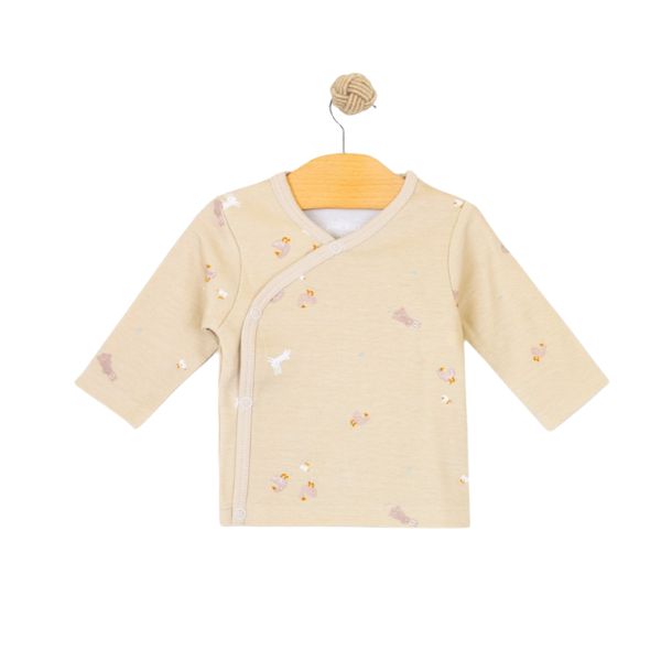 Ovaj set za bebe je praktičan izbor za izlazak iz porodilišta. Sadrži laganu benkicu na preklop, pantalonice sa stopicama, bodi bez rukava, portiklu, kapicu i rukavice. Svi komadi su šiveni od nežnog pamuka koji je prijatan za kožu i jednostavan za održavanje. Dezen je u umerenim tonovima, pa se lako kombinuje. Set je namenjen svakodnevnom oblačenju. 100% pamuk.
