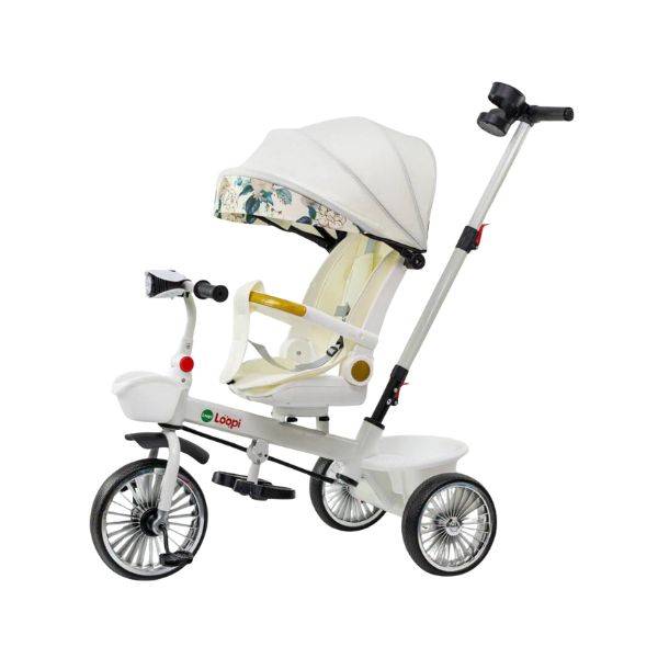 Čvrsta i kvalitetna plastika. Metalni elementi za bolju stabilnost i trajnost. Preporučeno za decu od 3 godine i stariju. Ergonomske ručke, naslon za leđa, sigurnosni pojas, stabilna konstrukcija sa tri točka. Uklonjiva ručka za guranje Korpa za igračke. Oborivi naslon – za dodatnu udobnost deteta. EVA gume – tiha vožnja, bez bušenja. Prednji točak: 10″. Zadnji točkovi: 8″.