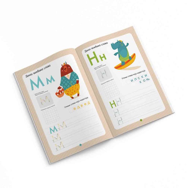 Svaki predškolac uživaće vežbajući da piše slova, a uz to će kroz zabavu ovladati ćirilicom pre nego što sedne u školsku klupu. Pismo: Ćirilica. Format: 21 x 29,7 cm. Obim: 32 strane. Kolor: u boji. Vrsta korica: meki povez, klemovano.