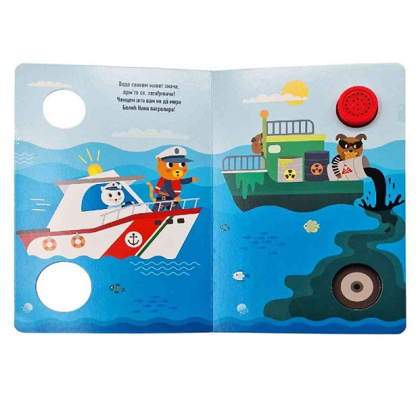 Upoznaj sedmoricu braće Nino-Nino koja su talentovana za spasioce. Gasić Nino i Vatrić Nino su vatrogasci, Plavić Nino, Belić Nino i Brkić Nino su policajci, Šumić Nino je šumar a Spasić Nino vozi ambulantna kola. Nema zime kad Nino-Nino momci voze svoja vozila. Pritisni dugme i čućeš im zvuk za uzbunu! Pismo: Ćirilica. Format: 15×23 cm. Obim: 14 str. Kolor: u boji.